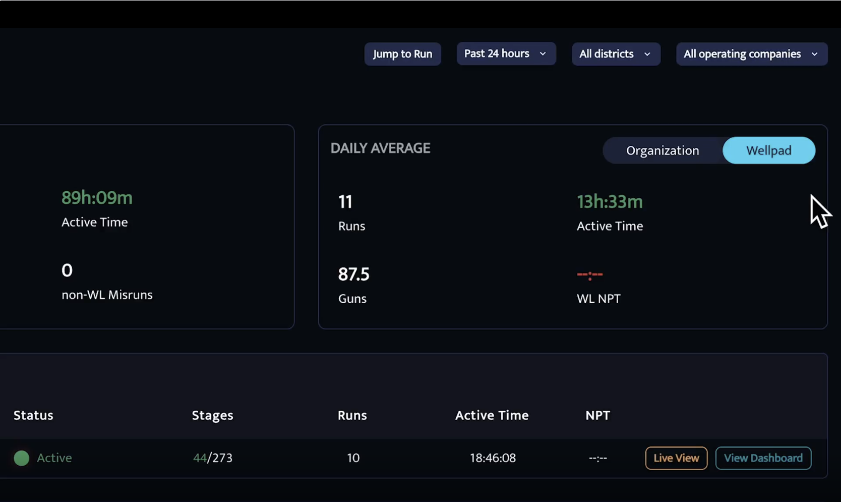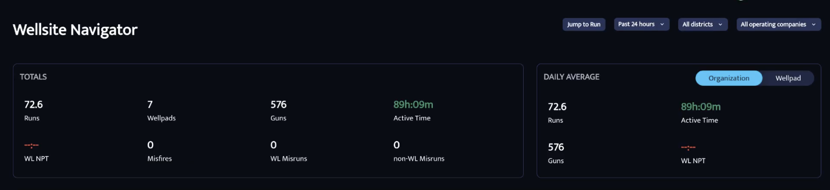 Breaks down activity per well pad, such as average runs per crew, making it easier to spot trends or performance differences.