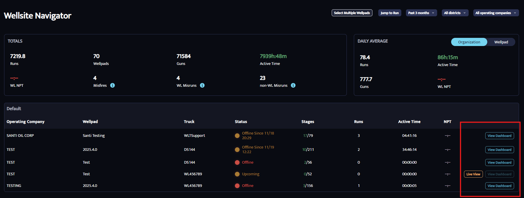 Your central hub for viewing and managing all well pad activity.