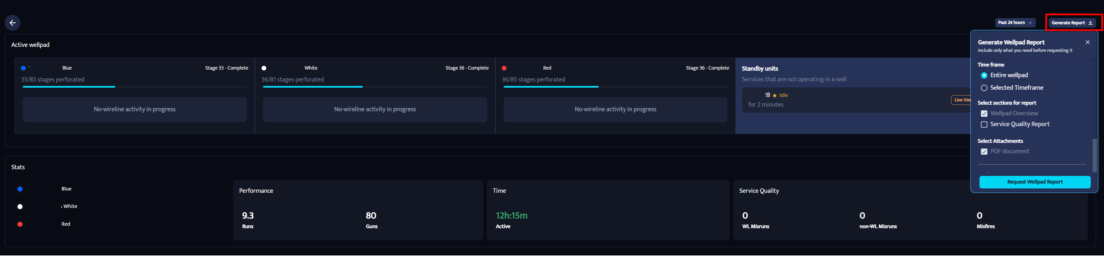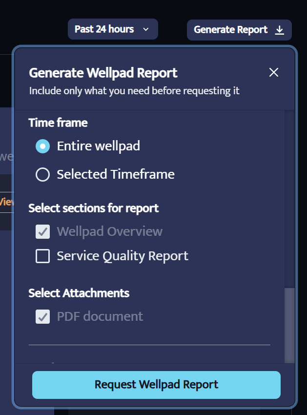 This creates a PDF report for the selected well pad which includes stats and you can select so it includes SQ information as well.
