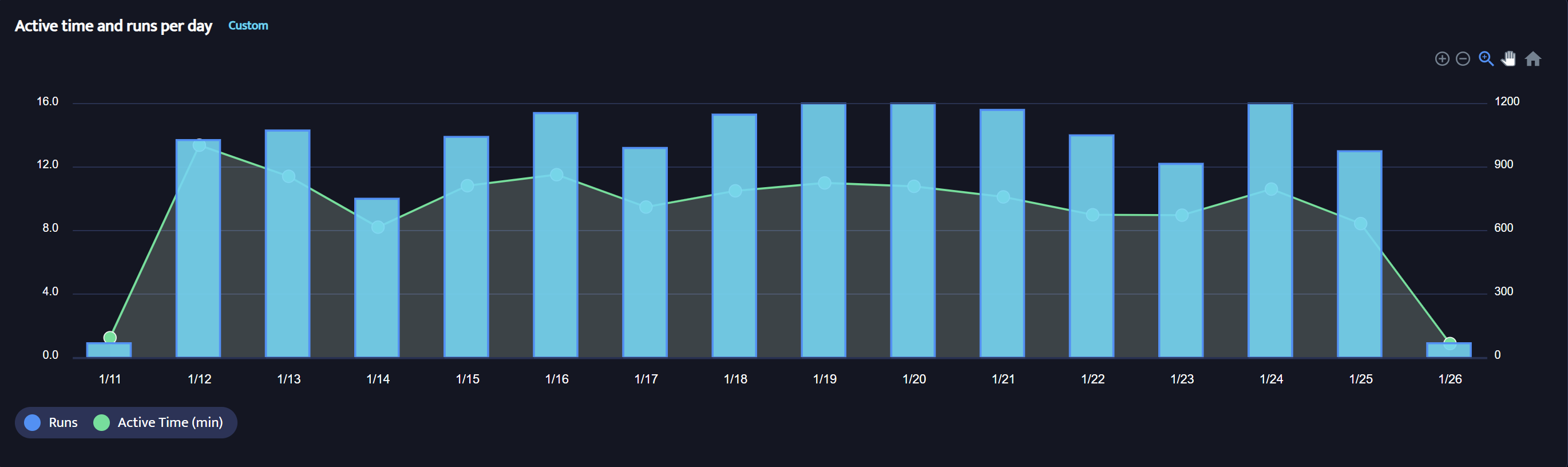 This graph shows daily activity during the selected time window.