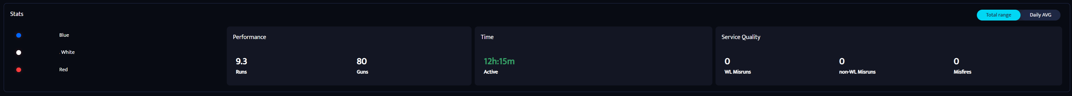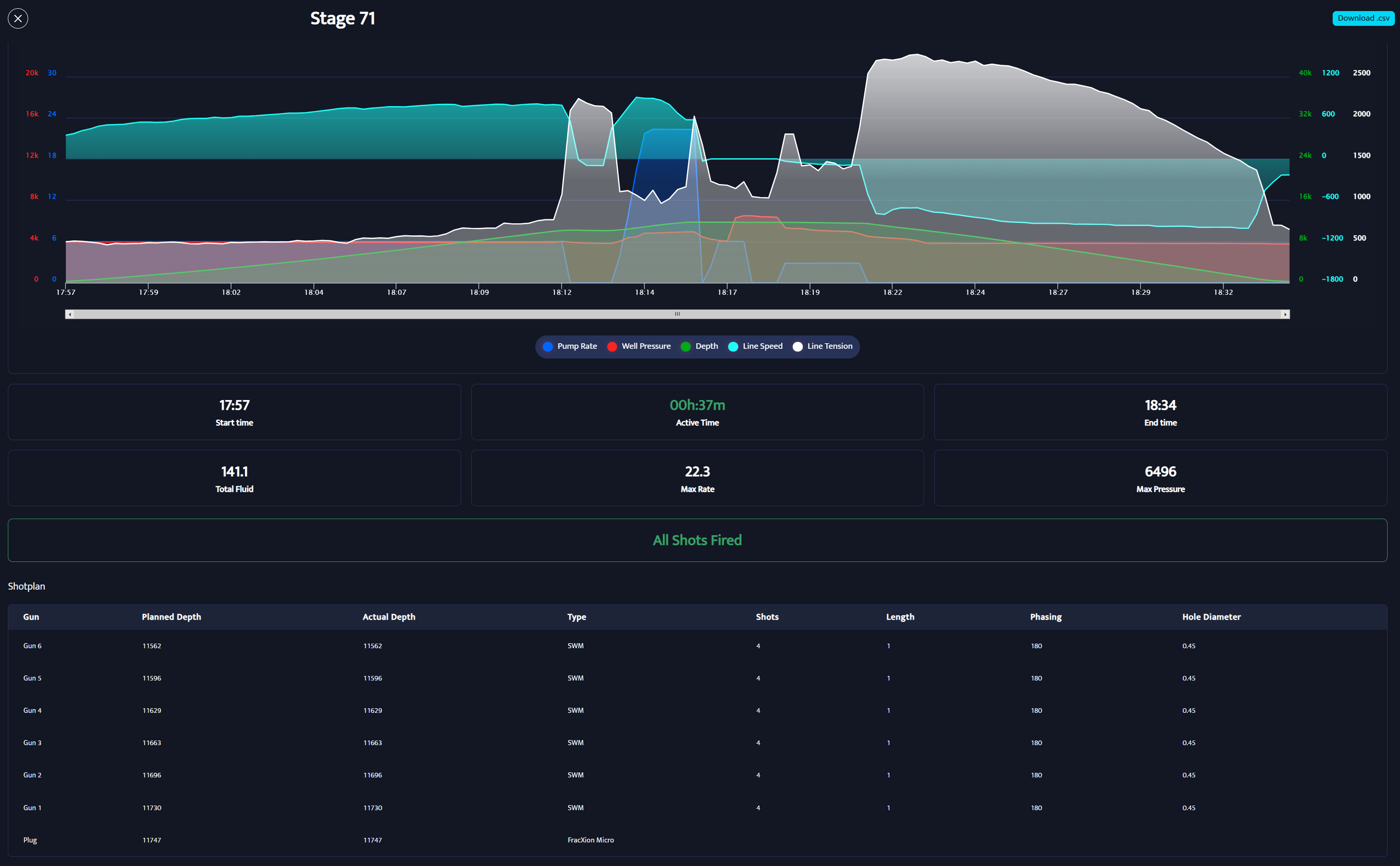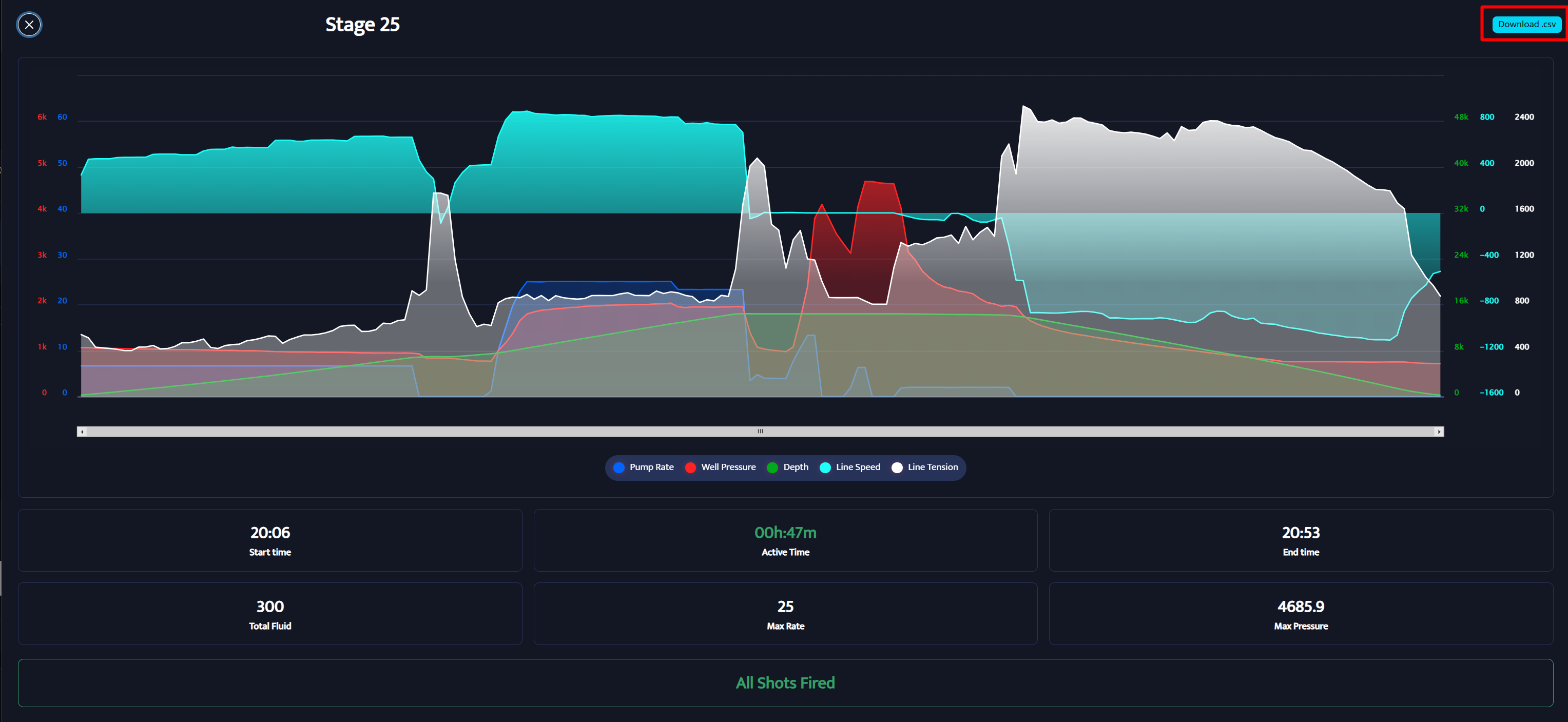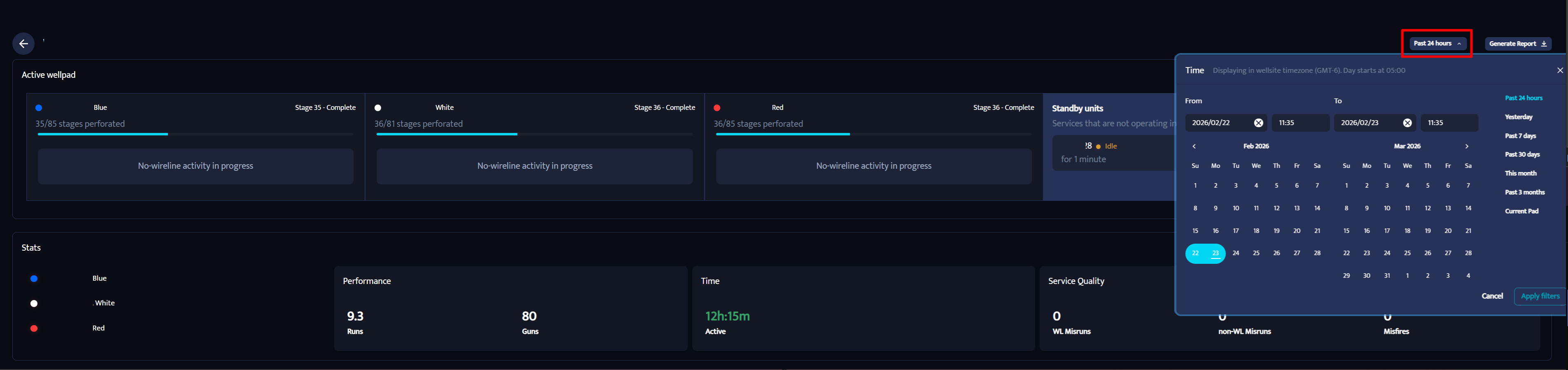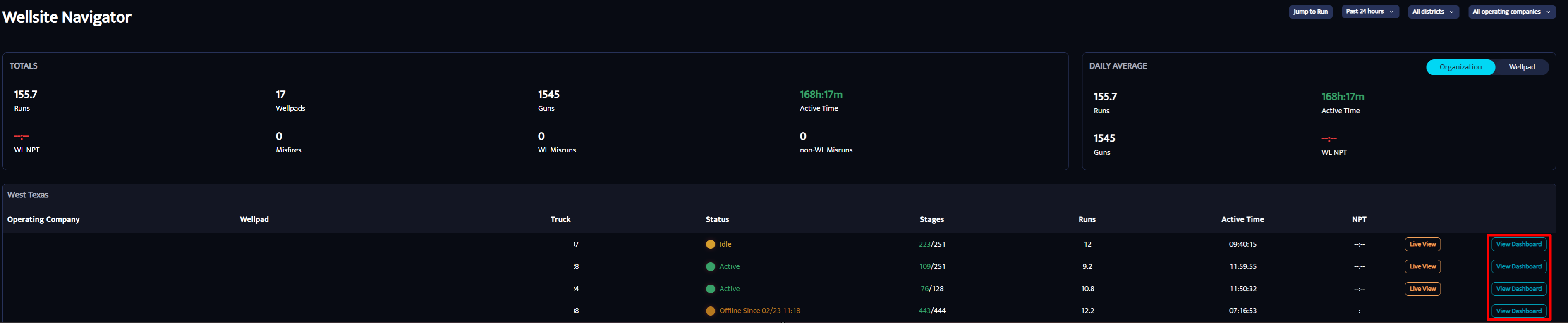 Below the top section, you’ll see well pad statistics for the selected time range, including: