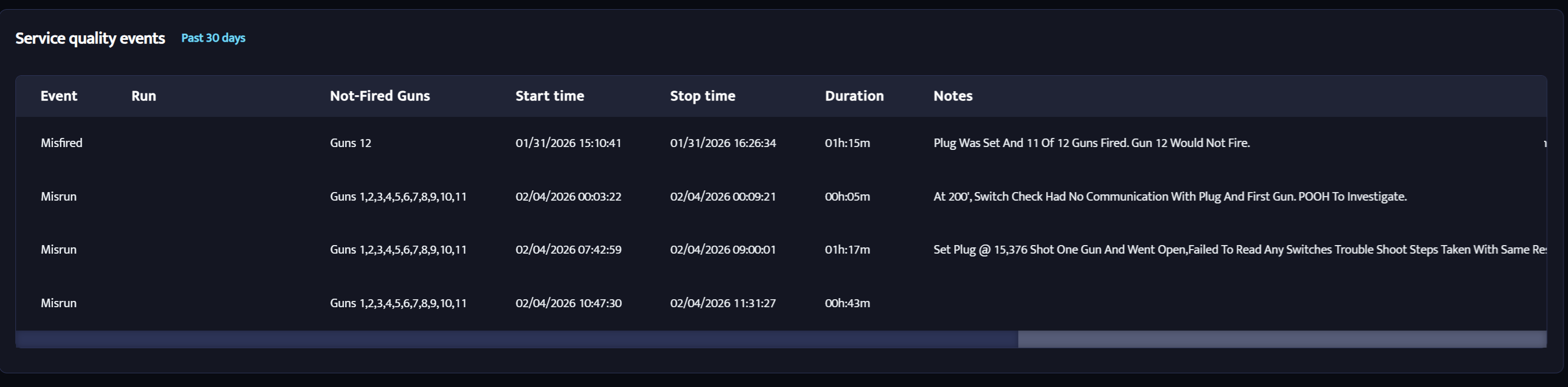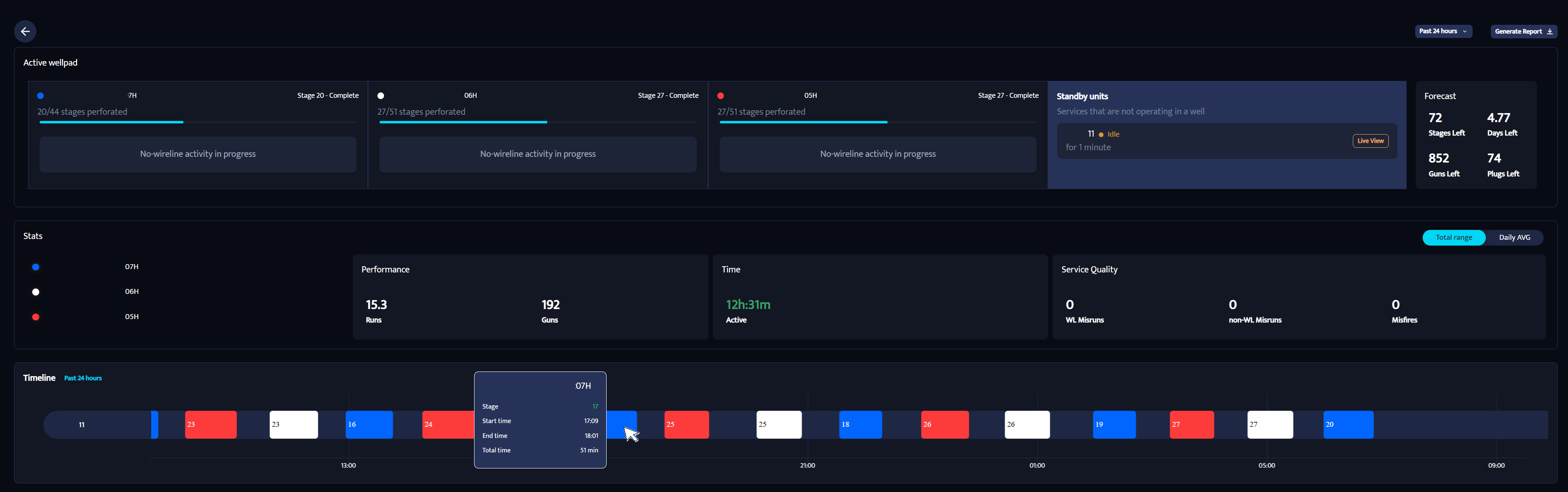 The Dashboard shows all key information for the well pad you selected. It provides a clear view of activity, performance, and service quality in one place.